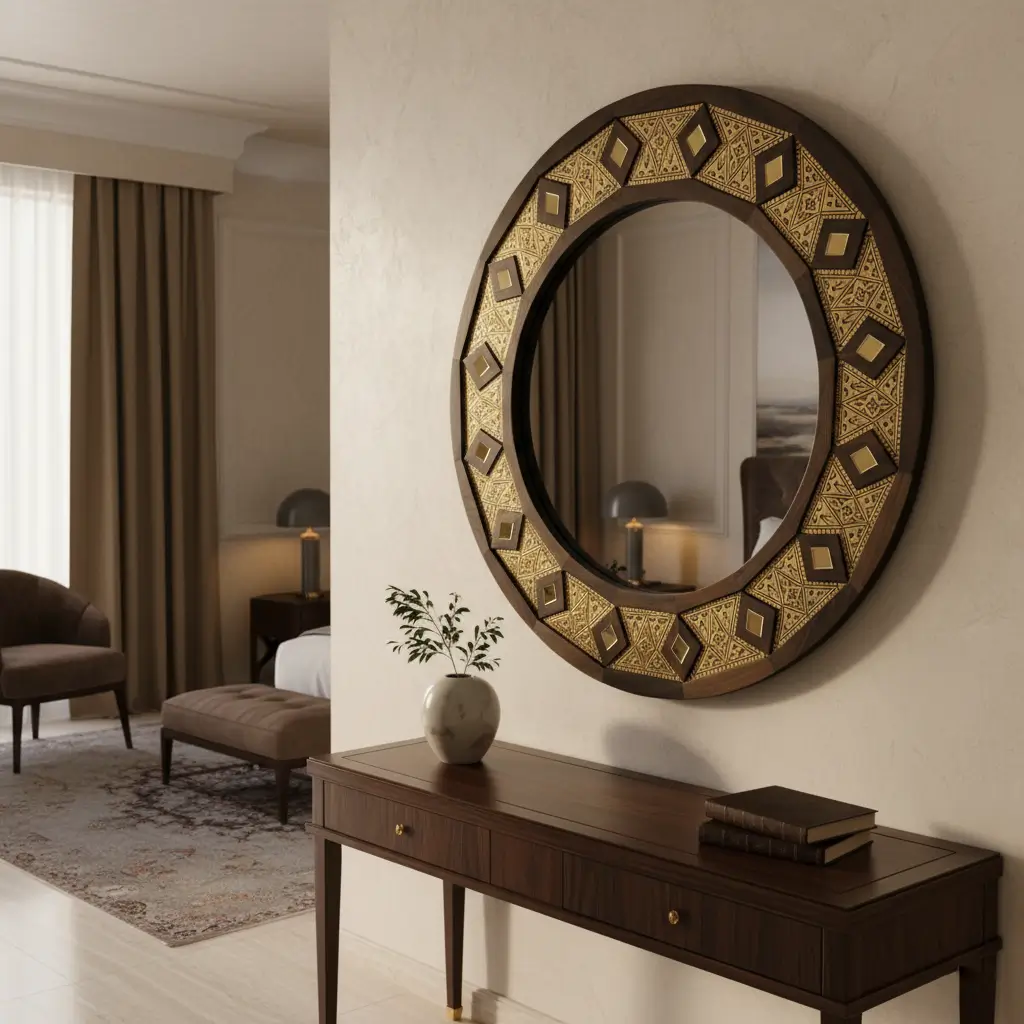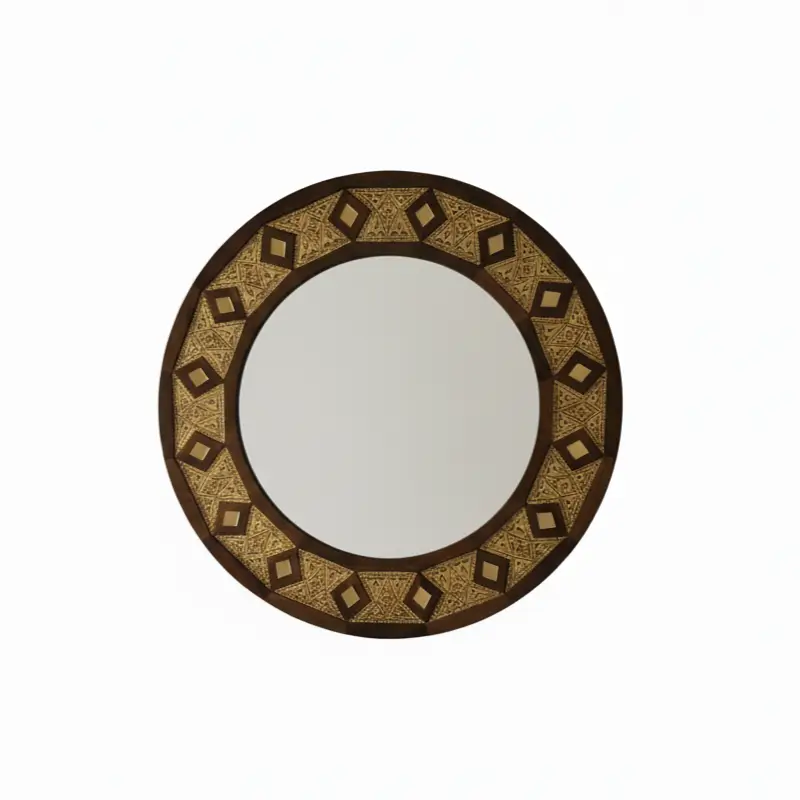 Ajoutez une touche d’élégance orientale à votre intérieur avec ce miroir rond aux motifs dorés finement travaillés. Idéal pour sublimer un salon, une entrée ou une chambre avec une note artisanale et chaleureuse.