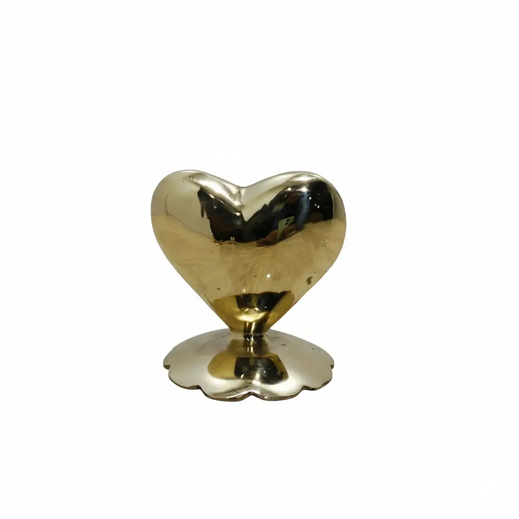 Une pièce décorative raffinée en forme de cœur, finition dorée brillante, idéale pour offrir ou sublimer une étagère. Apporte une touche luxueuse et chaleureuse à tout espace.