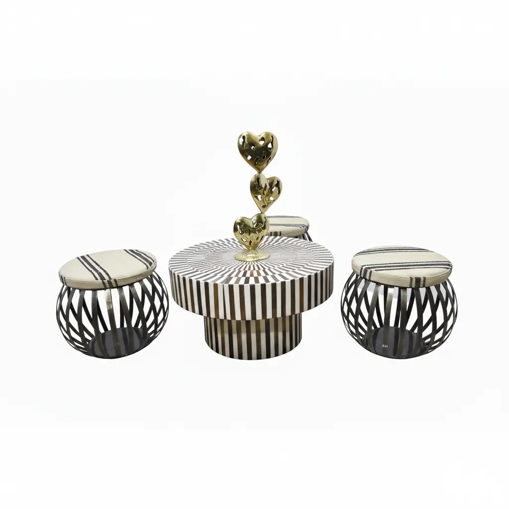 + Free ShippingTable ronde rayée + 3 poufs design